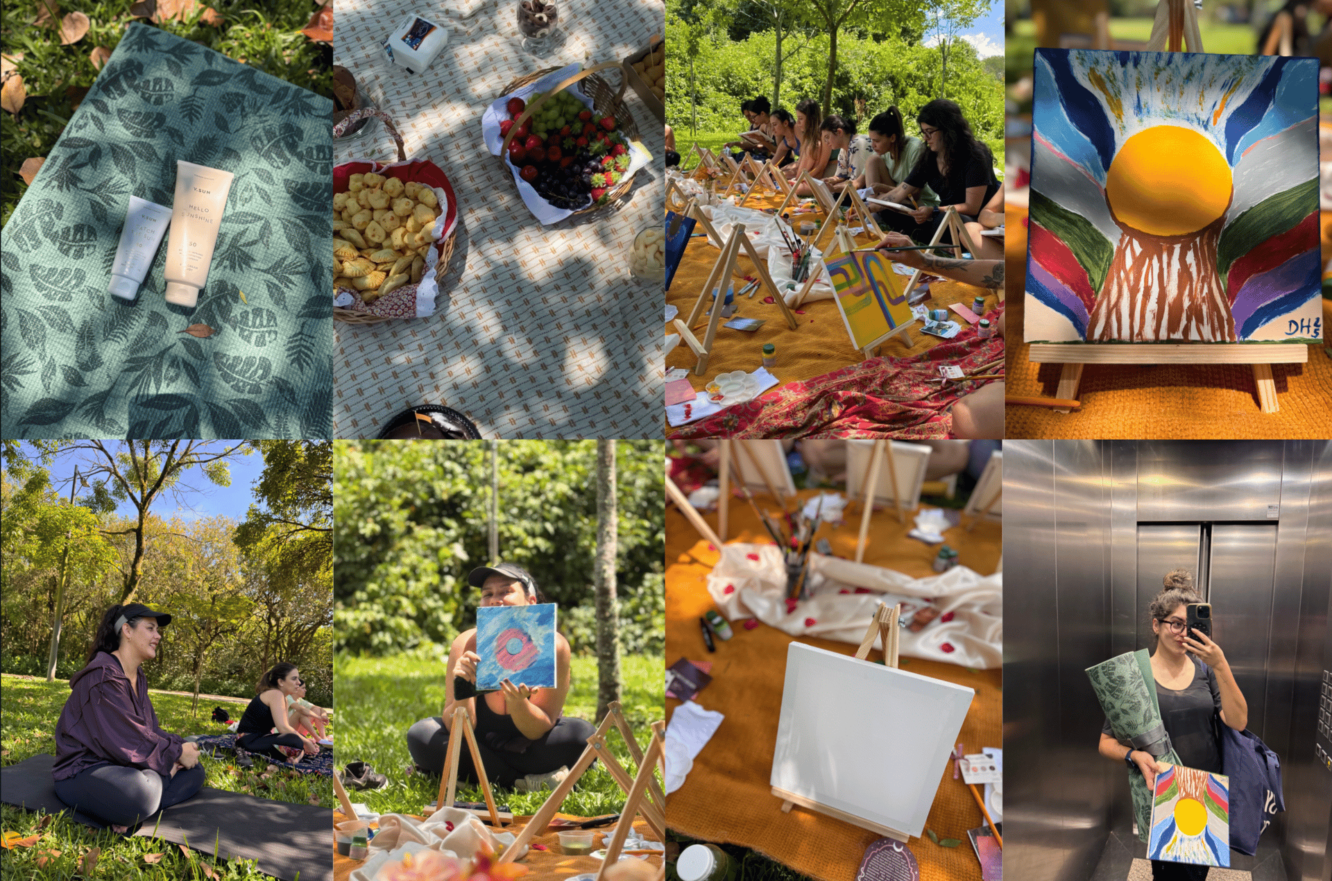 Ontem, no sábado eu escolhi fazer algo pra me ajudar a encontrar esse respiro mental me conectando com algo que abasteceu meus 3 tanques, eu fui no parque fazer yoga, piquenique e pintura com mais 20 mulheres, foram quase 5h de paz, de sair da minha bolha, de conhecer novas pessoas, de estar junto de quem me faz bem, eu e uma amiga, Laienny (que foi minha aluna da IGPP mas virou uma amiga e hoje tem um lugar especial no meu círculo íntimo) e eu sai de lá renovada, reabastecida, literalmente: